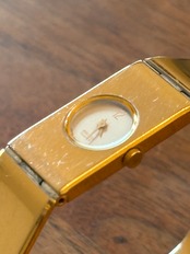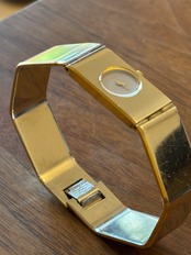 This is a beautiful Seiko octagonal bracelet watch. It looks perfect from any angle. It has a cool design that doesn't look vintage. It's beautiful from any angle. The size cannot be adjusted. I think it would look very cute if it was made larger like a bracelet. You could also stack several bracelets. It's hard to see, but there is about 1mm of gold in the body and the edge of the band. The condition is normal