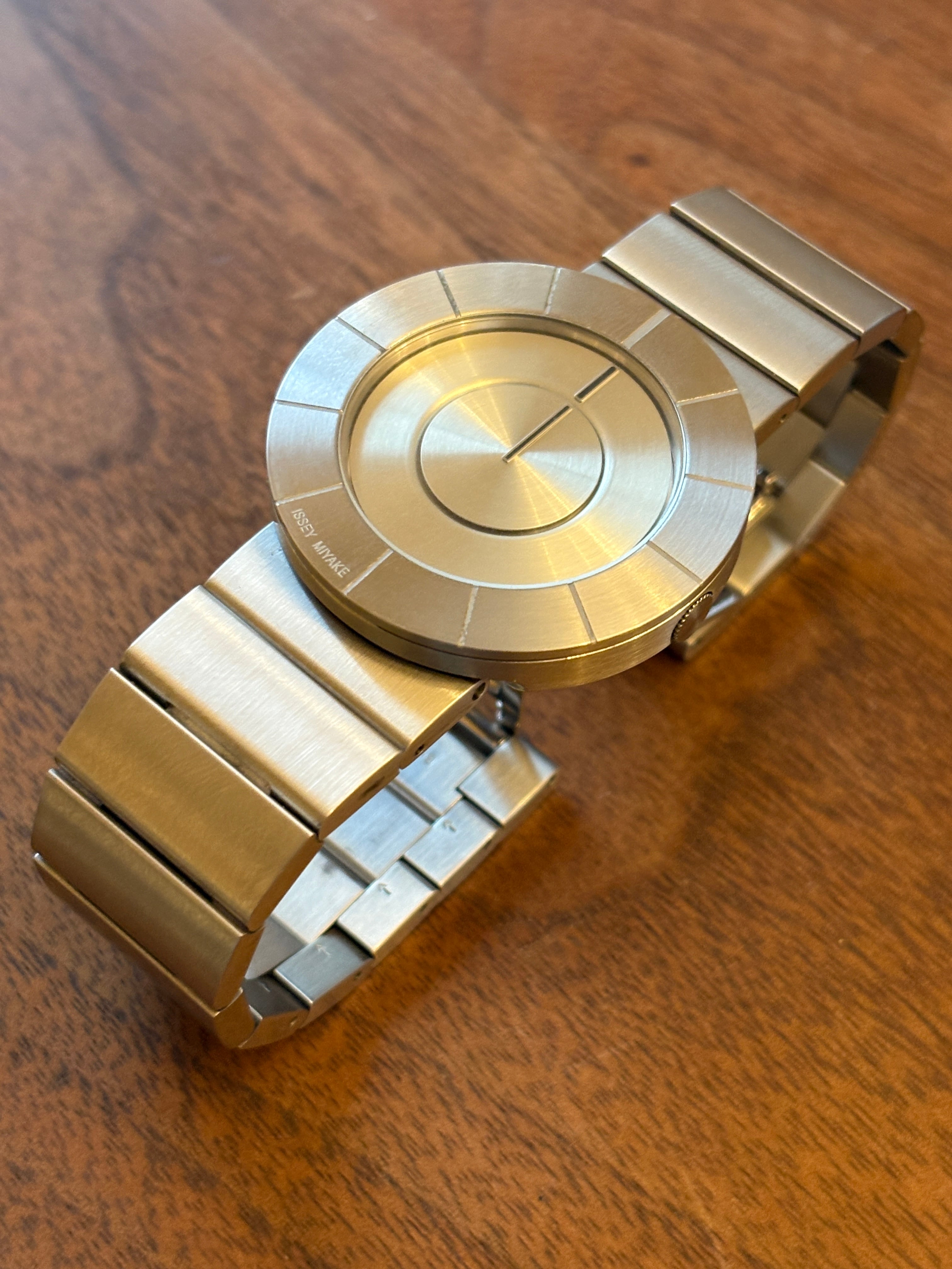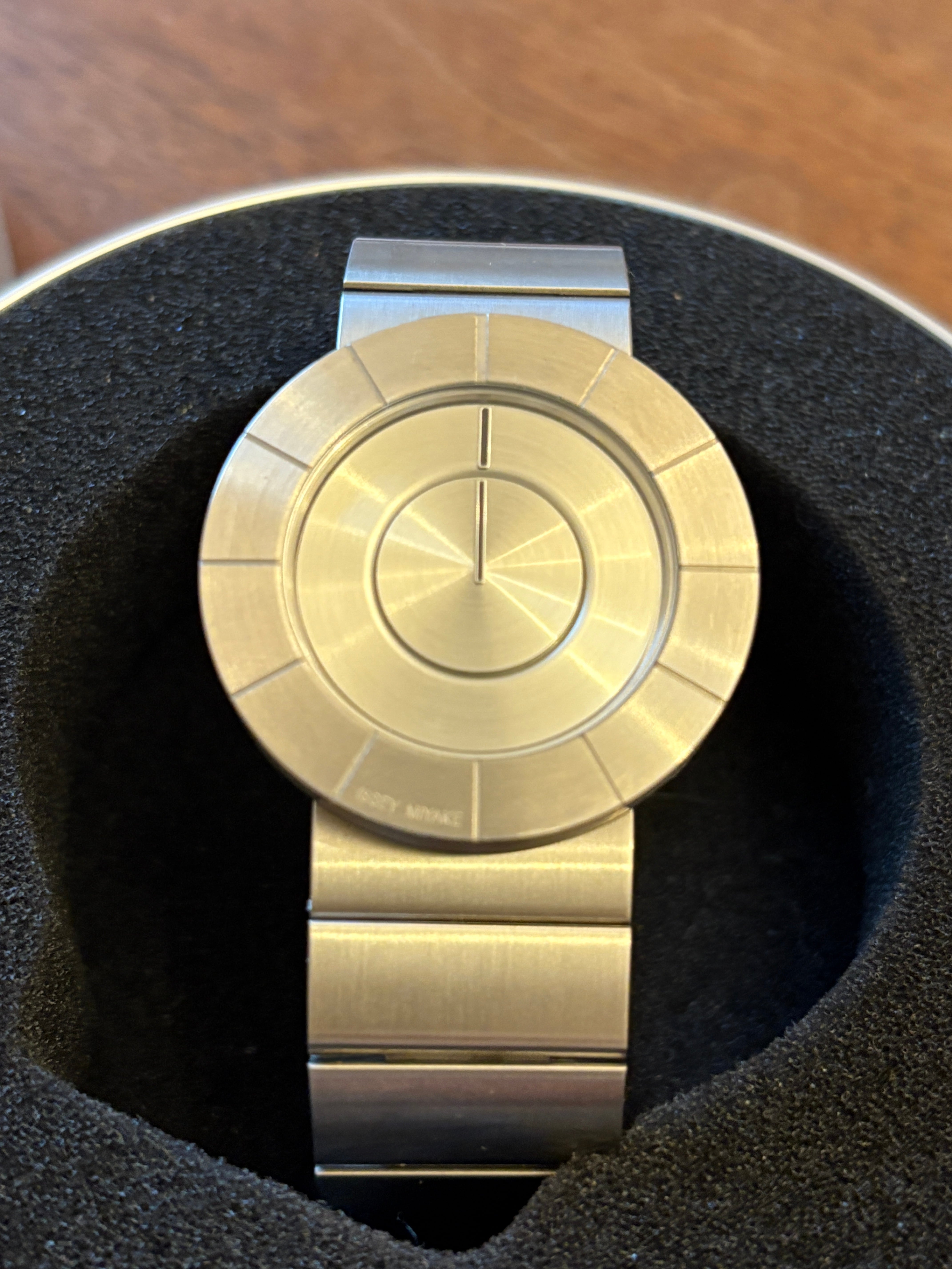 This is one of Issey Miyake's most popular models. It's so beautiful it could be included in a collection. It's a design I'll never tire of. It's a perfectly beautiful watch from any angle. What's great about this watch is that the box is also incredibly cool. I can't throw away this box. It's in perfect working order. The strap is about 20cm long.