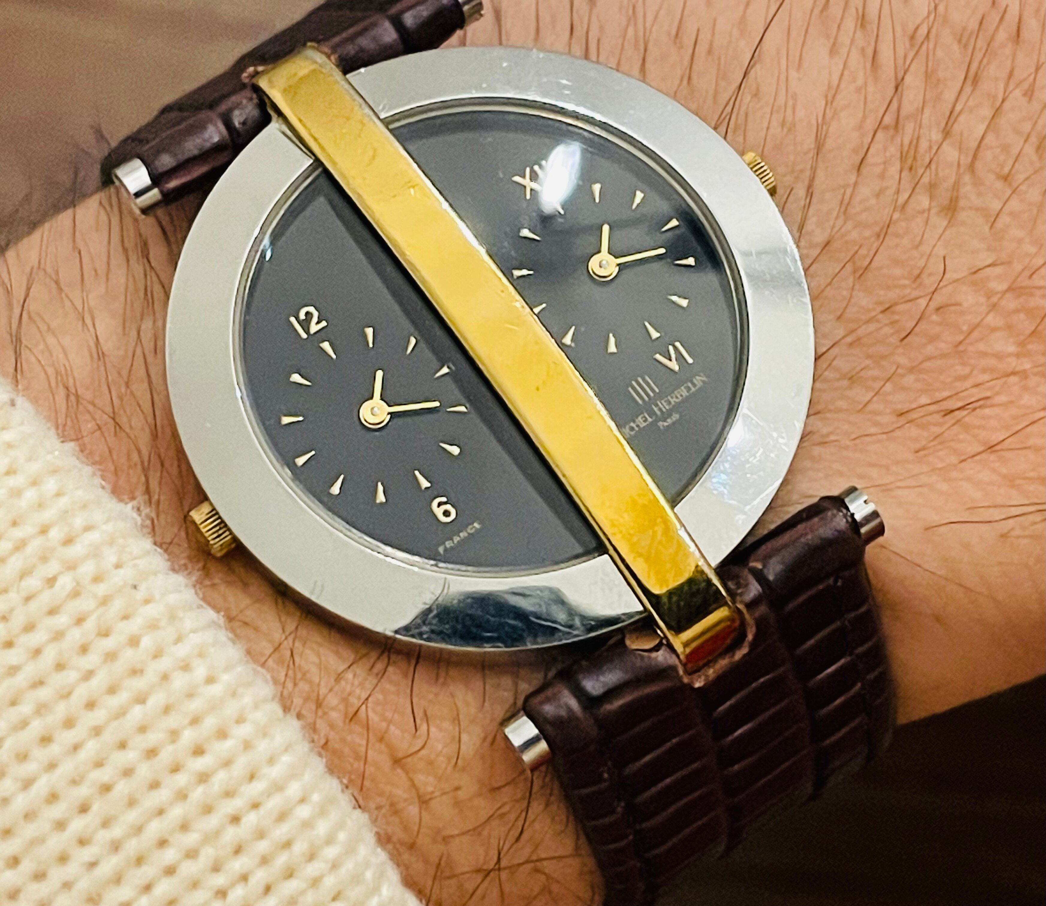 It has a very beautiful double face design. This brand's double-faced watches are really rare. I've never seen it. Made in France. Quartz. It is working properly.