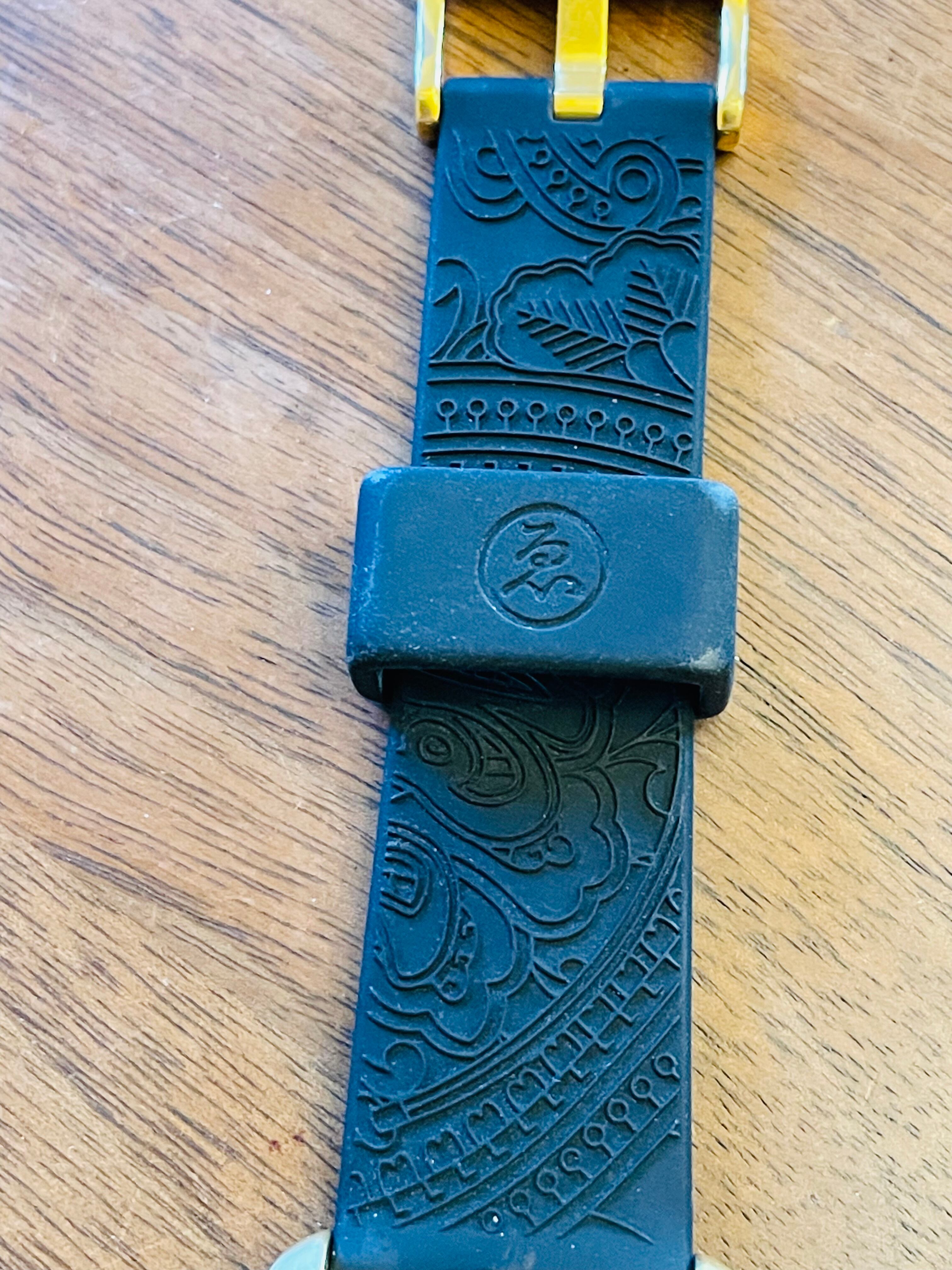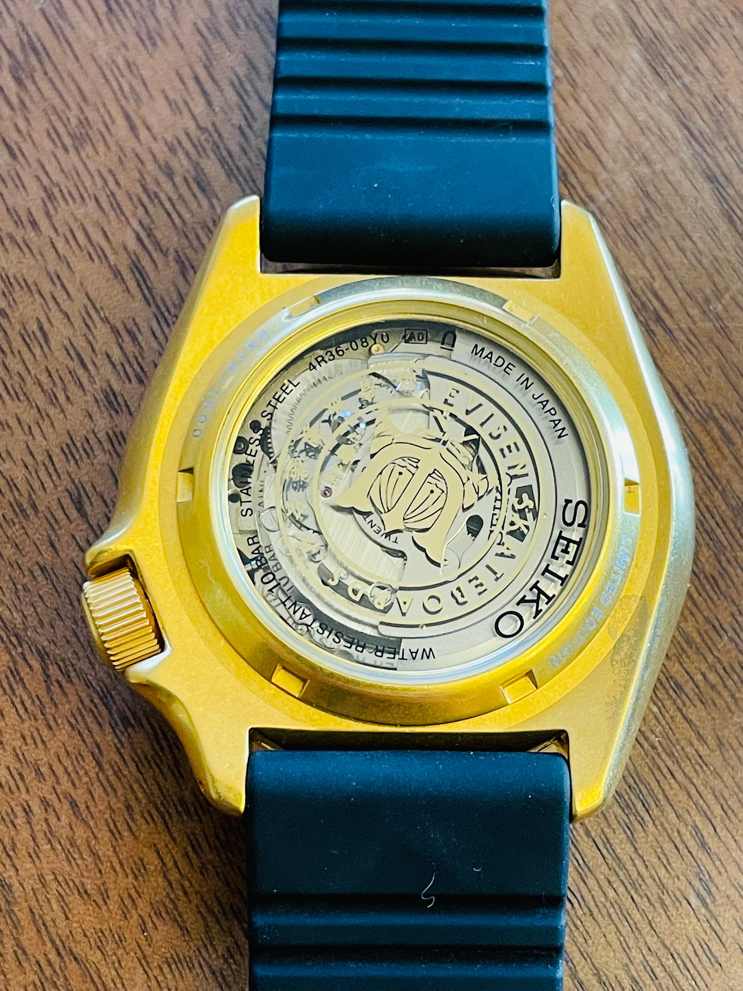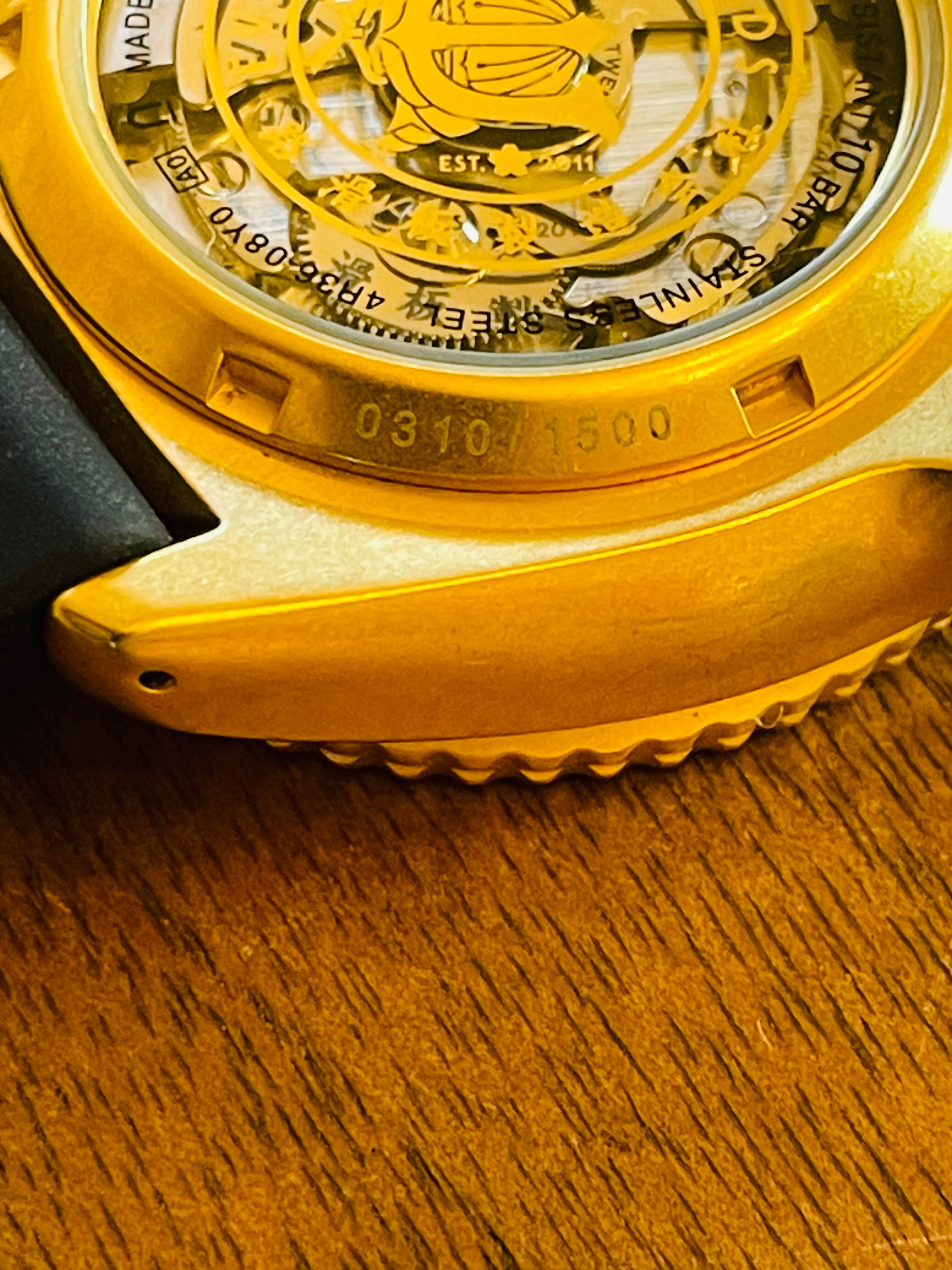This is a very cool watch with a Japanese armor motif. Old Japanese kanji are used on the bezel. Although it is simple, it has a very strong presence and has a solid design. It is in good condition and working properly. It's automatic.