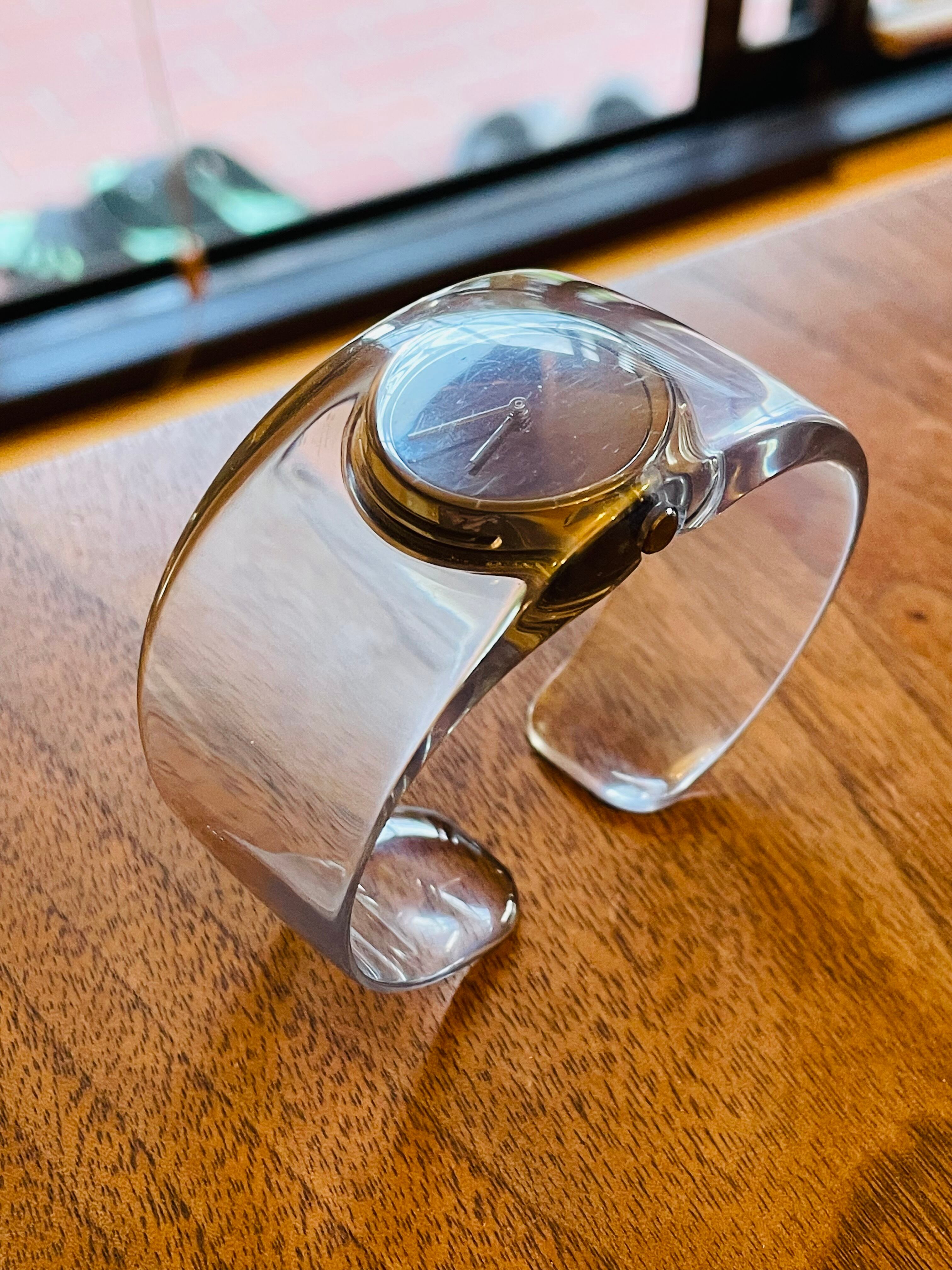 The dial has a mirror surface and is so light that you forget you're wearing it. The entrance is narrow. It's plastic so it spreads out. There is quite a lot of room inside. It's a perfect watch for summer.