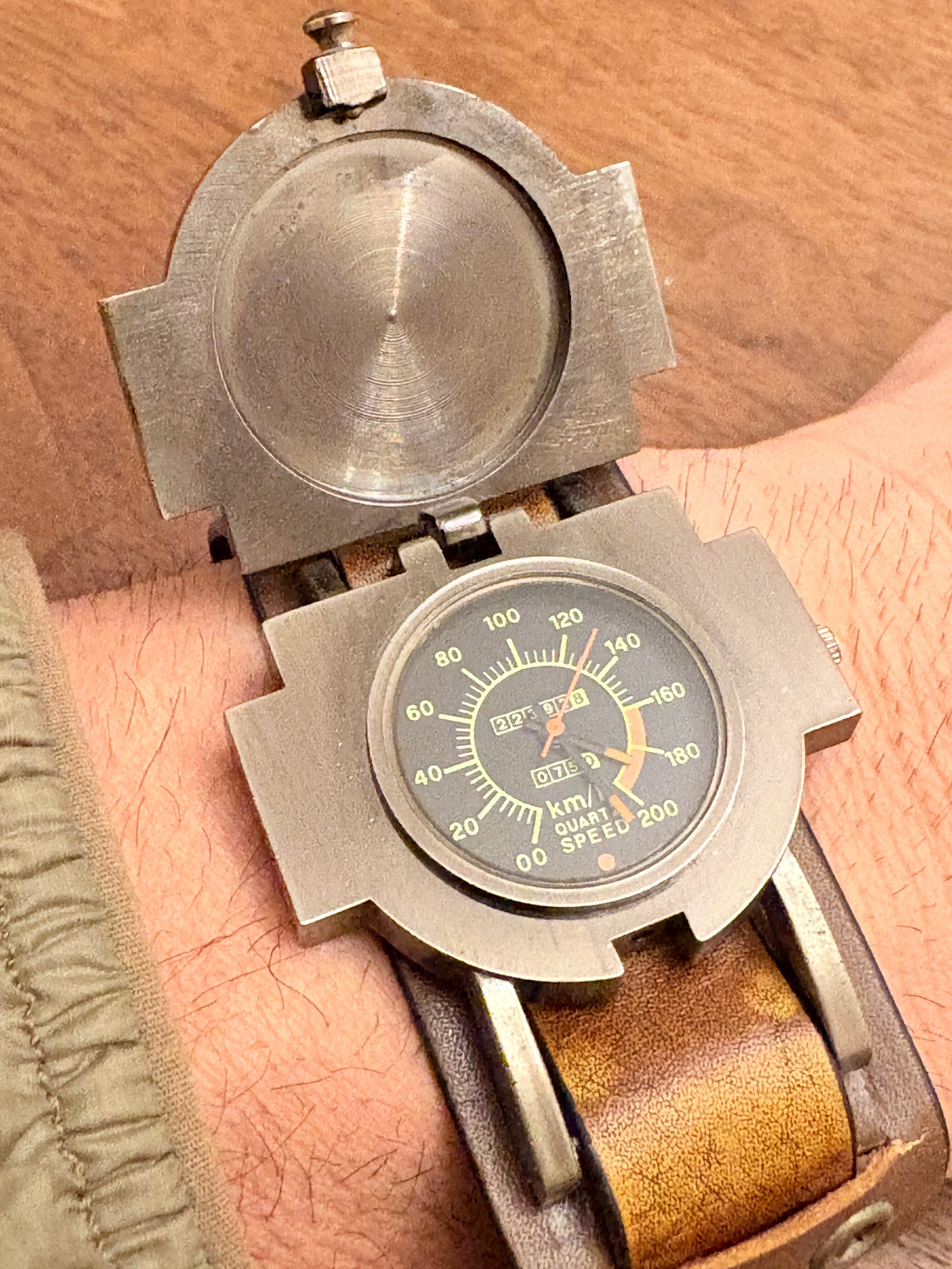It's irresistible for bike lovers. The dial is a meter, which is very cool. Condition is also good. It is working properly. Recommended for those who like unique watches.